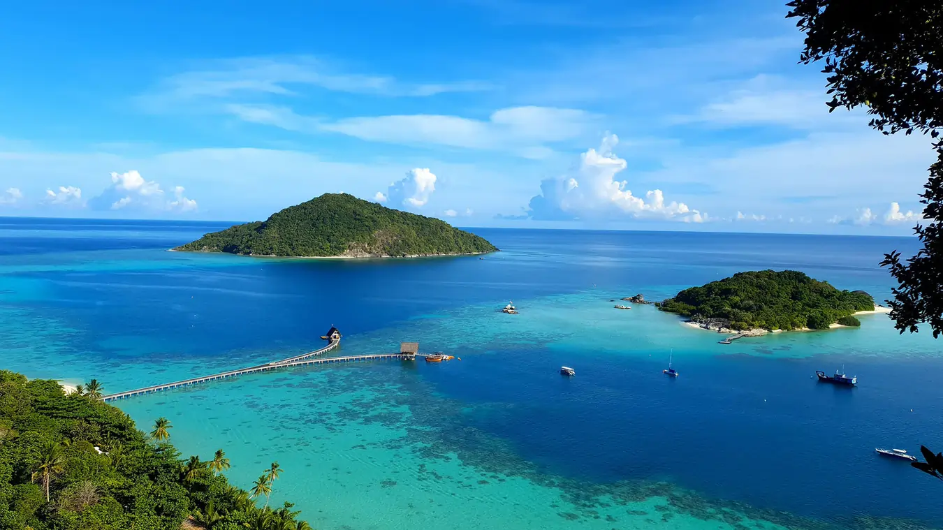 Pulau Bawah memiliki laguna berlapis warna yang memukau. Dari drone tampak cincin karang memeluk perairan biru pirus. Aktivitas favorit di sini adalah paddling, snorkeling di area dangkal, dan menikmati sunrise dari dermaga kayu. Untuk yang ingin kemewahan, ada resor eksklusif dengan konsep ramah lingkungan.